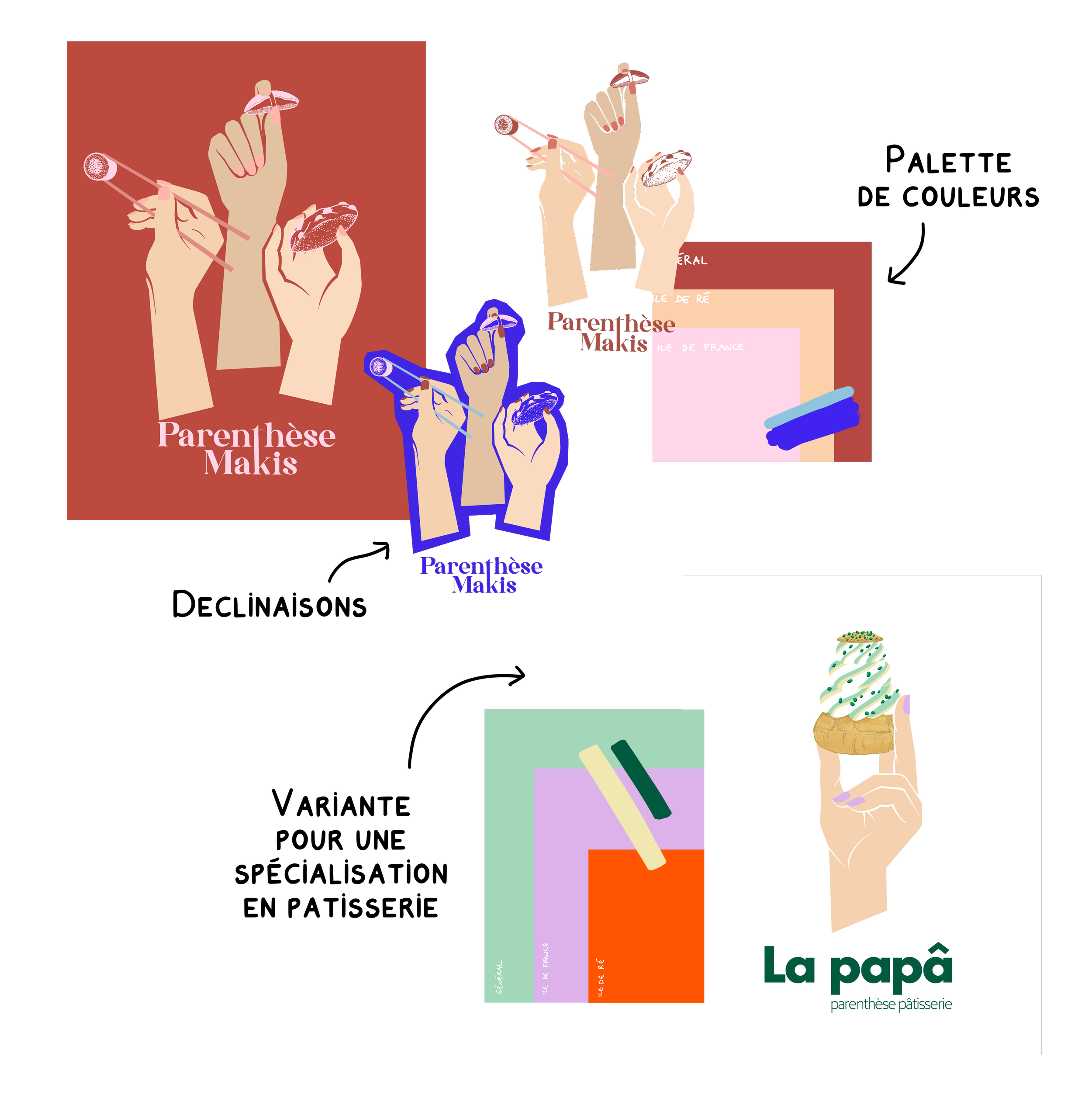 De cette rencontre découle des recherches de couleurs, de typographies et de formes plus ou moins figuratives et s’intégrant dans l’ADN de votre activité.
